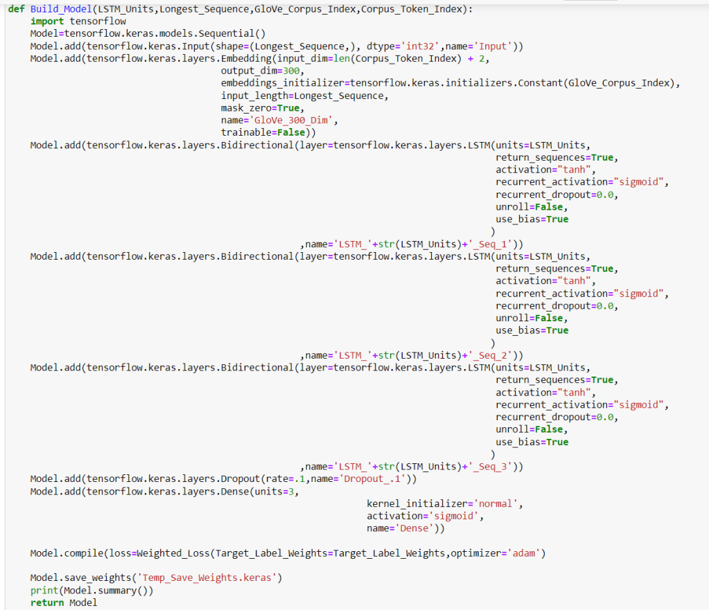 Padding is required to ensure consistent input length for the RNN. Keras’ padding function is more complex with apparent side effects. So I used this simple padding logic:Tokens+[0]*(Longest_Sequence - len(Tokens))